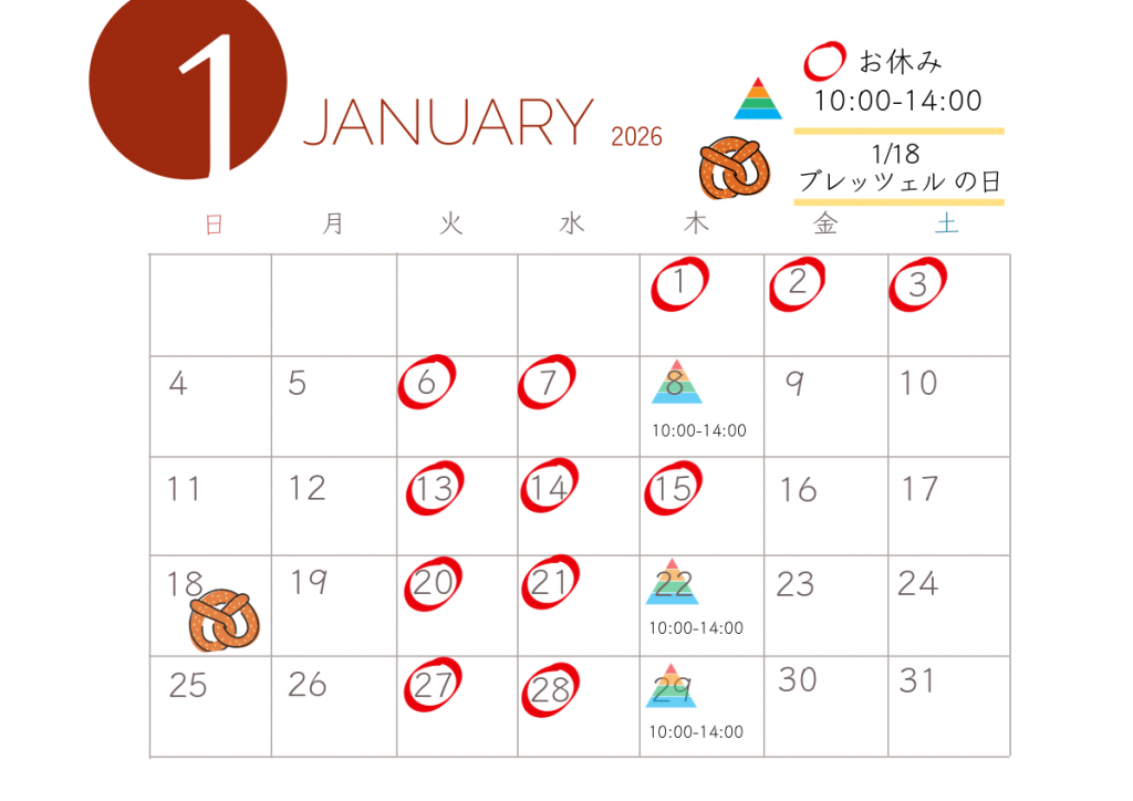 1月の営業日のお知らせです。